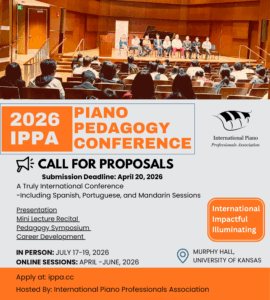 The IPPA Piano Pedagogy Conference, held biennially, brings together teachers, scholars, and students from around the world for hands-on learning and meaningful exchange. The 2026 conference centers on the themes of Internationalization, Impact, and Illumination, offering practical, down-to-earth insights for teaching and practicing, while celebrating outstanding educators and inviting fresh perspectives on piano pedagogy.